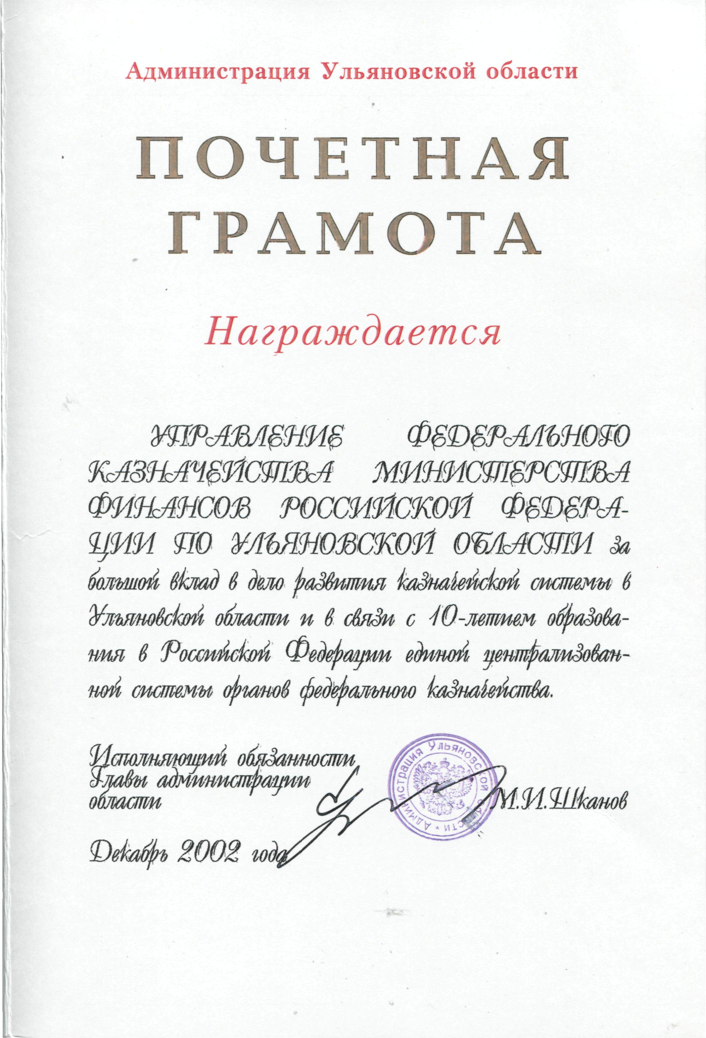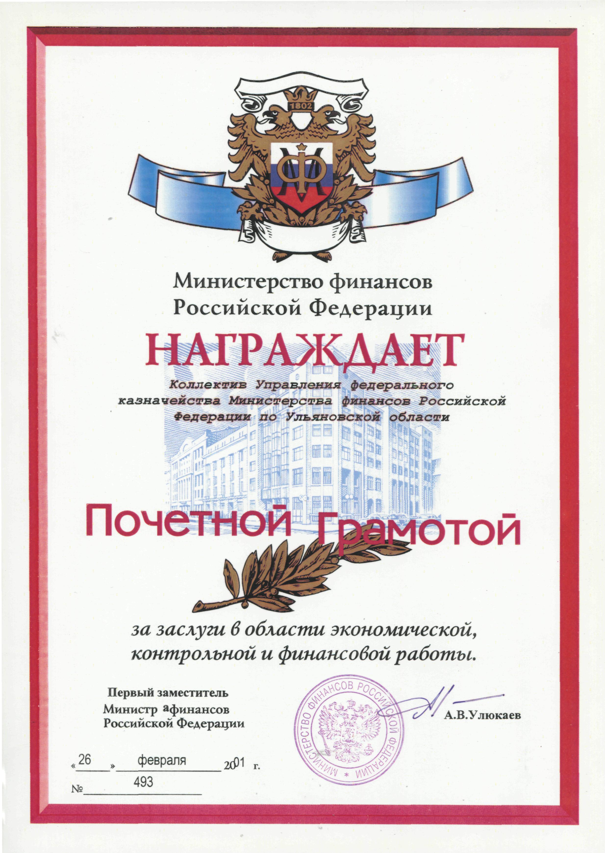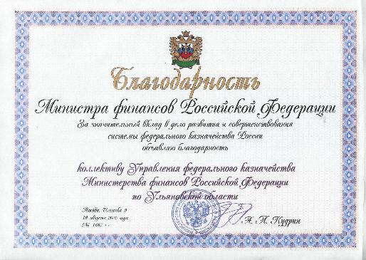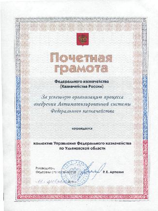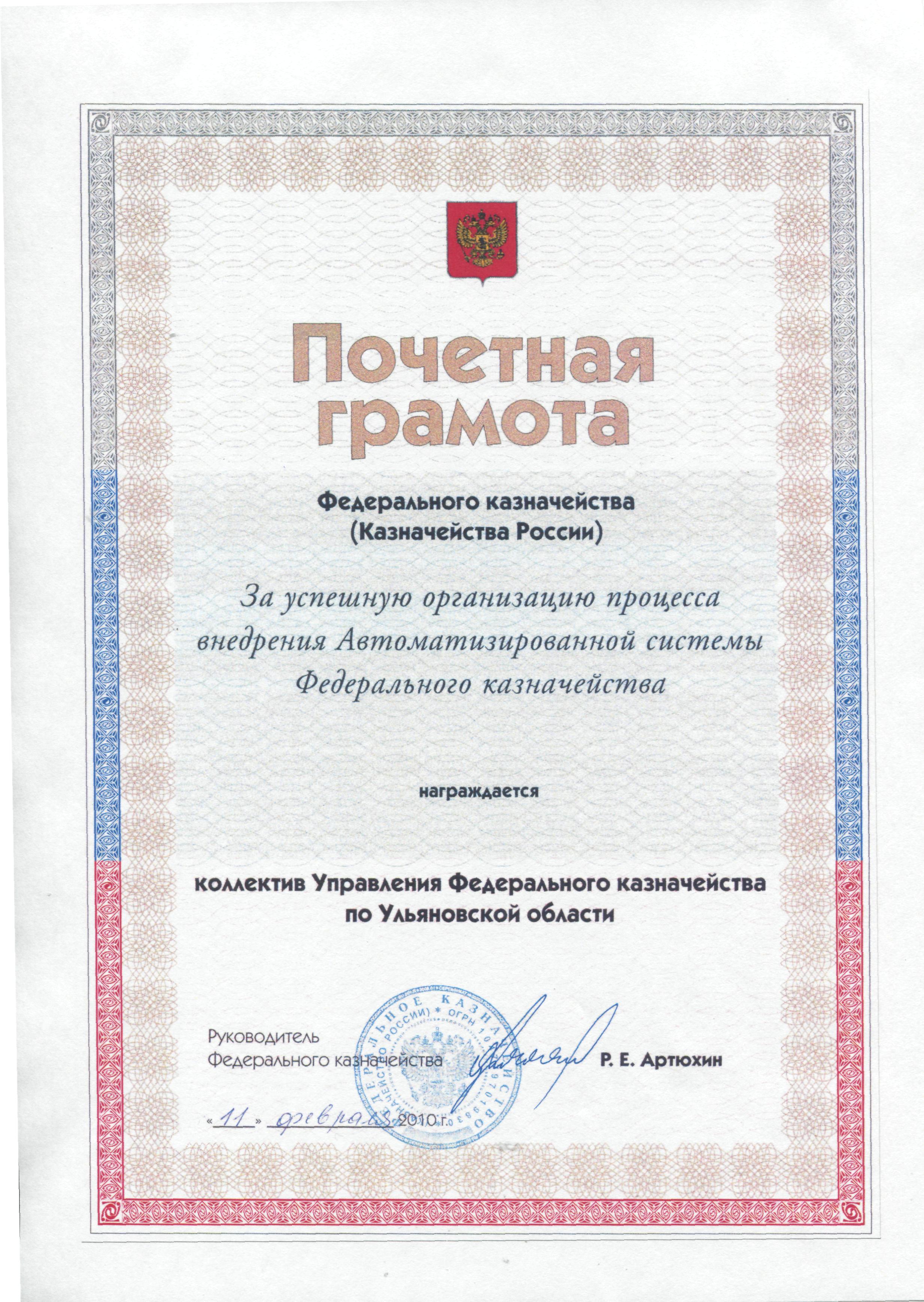 - Почетная грамота Федерального казначейства (Казначейства России)