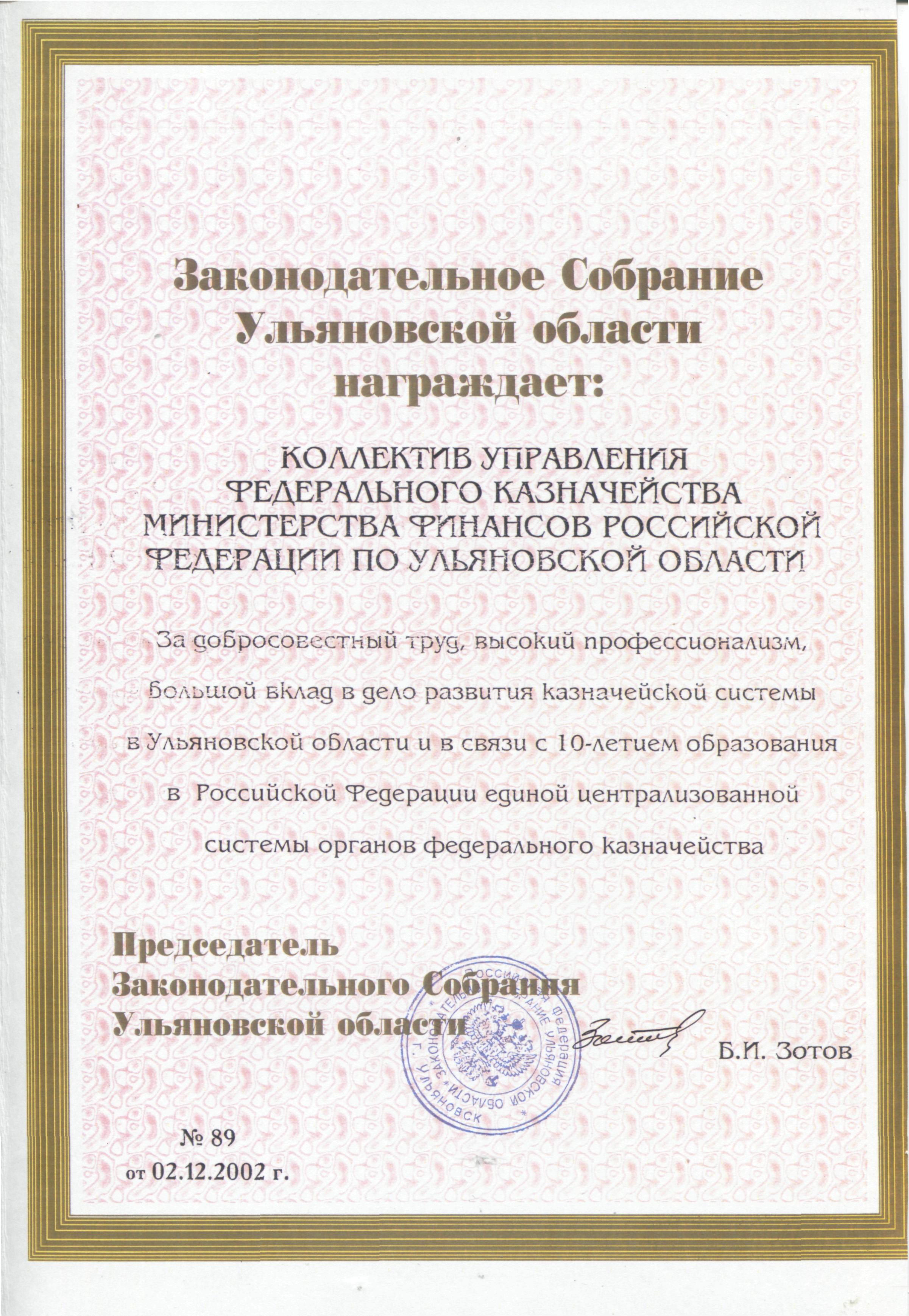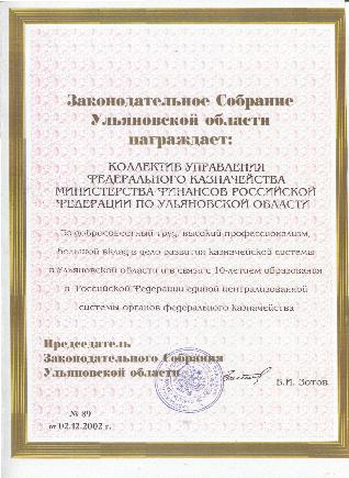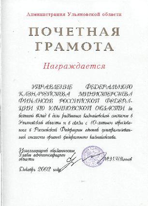 В 2002 году в соответствии с Соглашением о кассовом обслуживании исполнения бюджета, заключенным между администрацией Ульяновской области и Управлением Федерального казначейства по Ульяновской области, завершен перевод на кассовое обслуживание доходной и расходной части бюджета Ульяновской области.