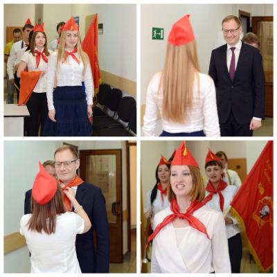 3 Июня 2016 года УФК по Ульяновской области с рабочим визитом посетил Руководитель Федерального казначейства Артюхин Роман Евгеньевич. Молодежный совет поприветствовал Руководителя на Родине В.И. Ленина. Тематика приветствия была связана с недавно прошедшим Днем Пионерии под лозунгом: «Будь готов! Всегда готов»!
